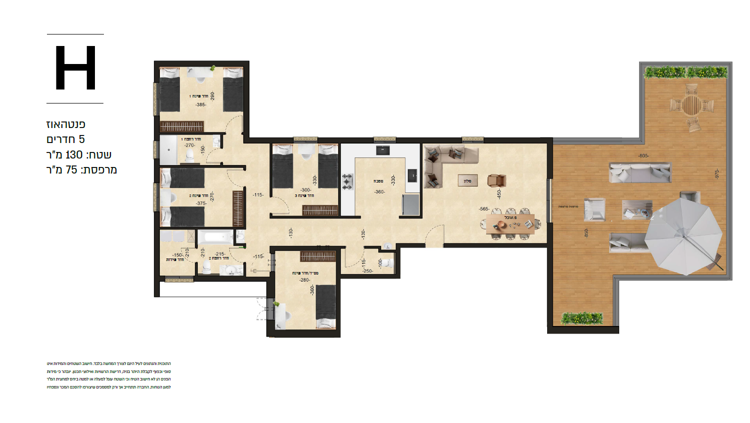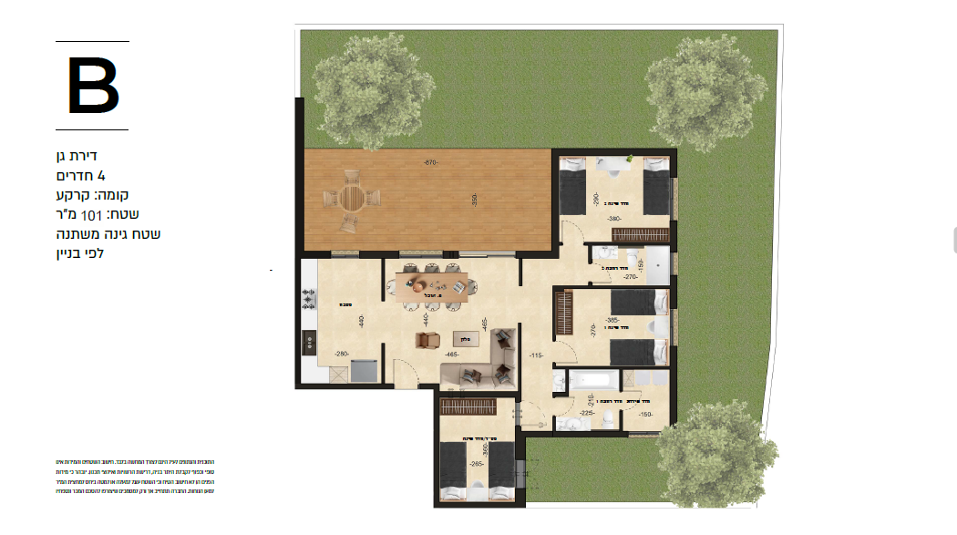 גן גדולות עם גינות מפנקות במיוחד ופנטהאוזים מפוארים. בכל הדירות מפרט